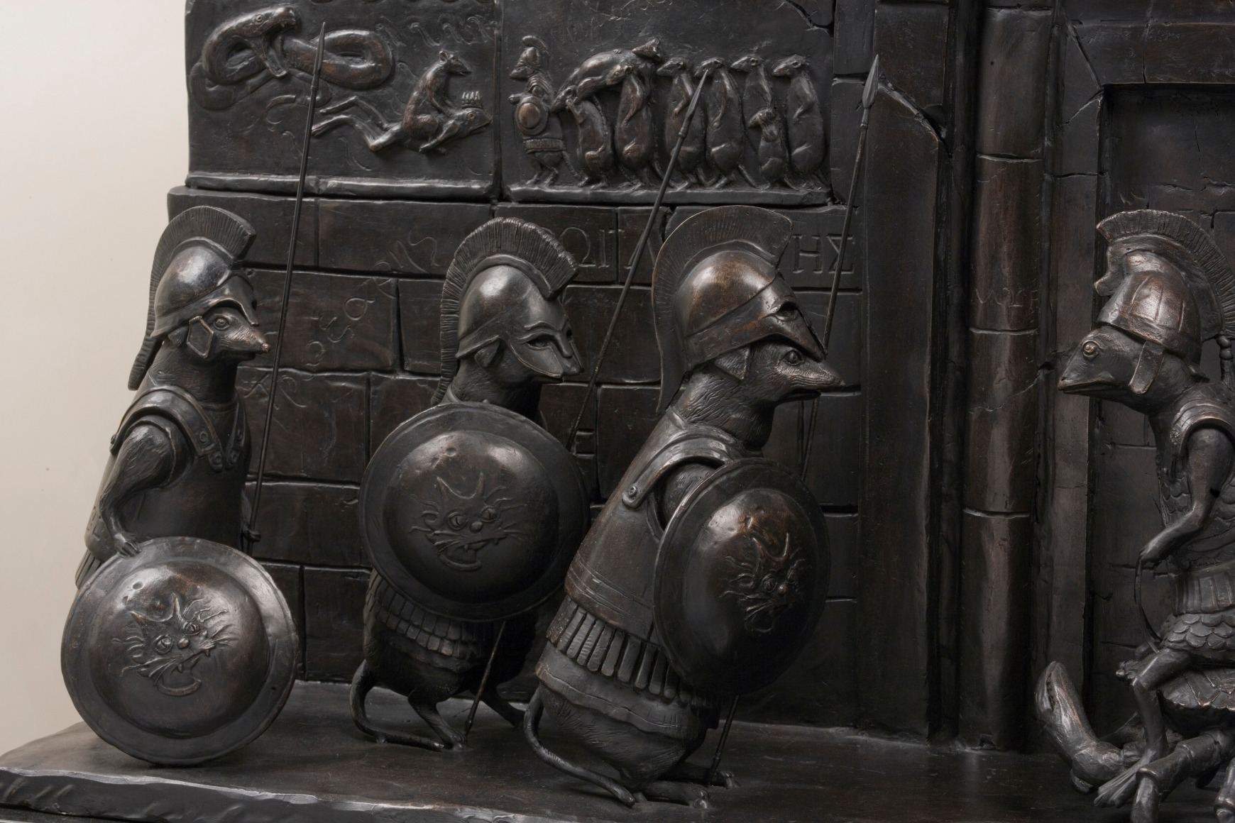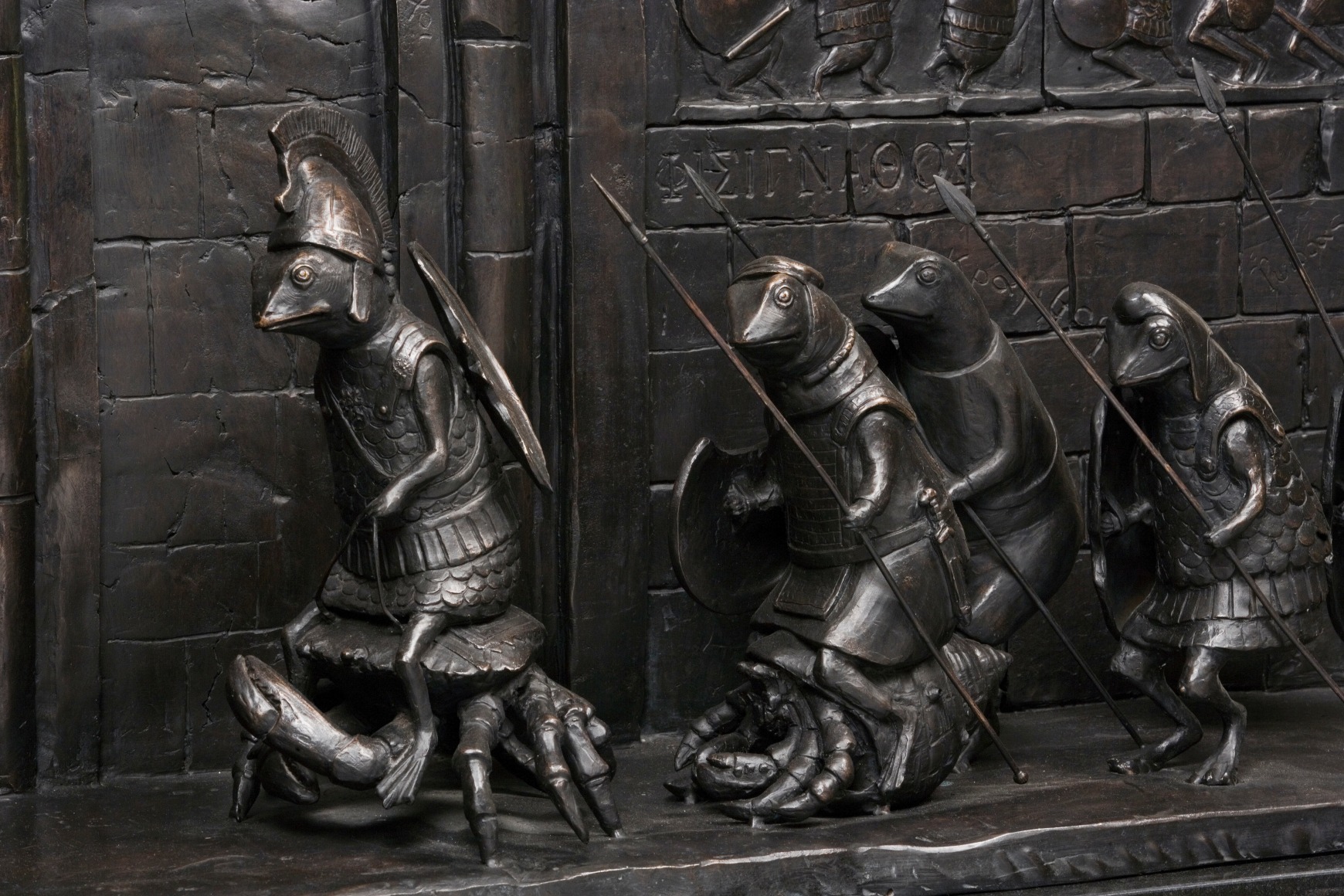 On Mount Olympus, the gods discuss whether or not to intervene. Athena refuses to support either side, as the mice nibble at her dresses and drink her lamp oil, and the croaking frogs keep her awake all night. The gods elect to watch the battle, and the frogs are soon in peril. Zeus decides to strike the mice with a lightening bolt and send a legion of crabs to fight alongside the frogs. The mice, fearing the wrath of the gods, flee and the war comes to an end.